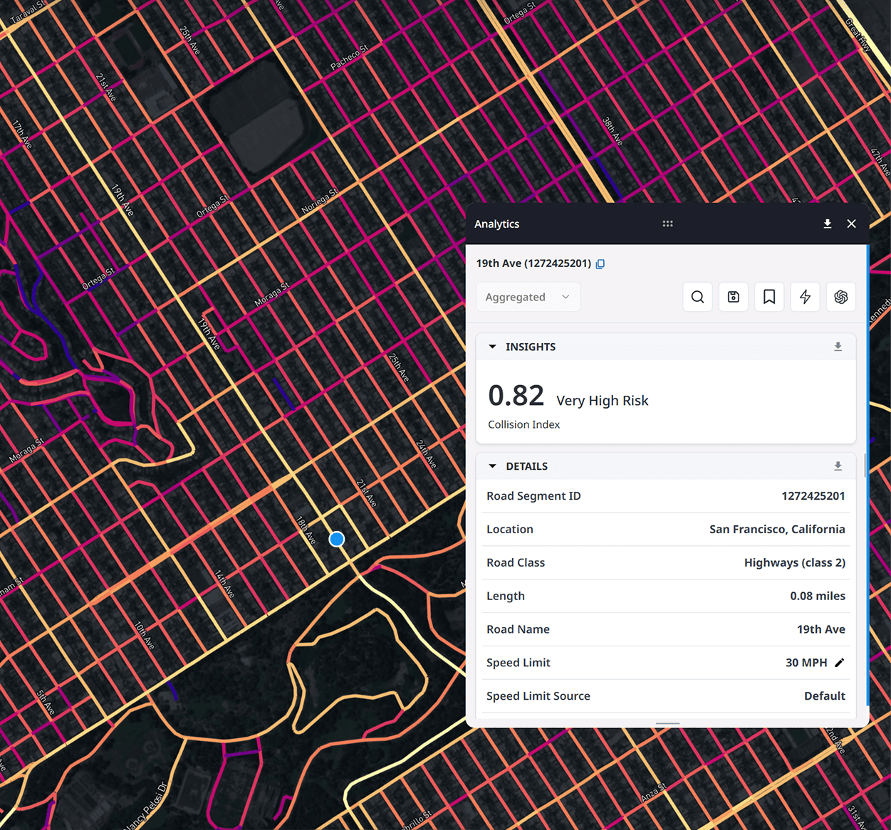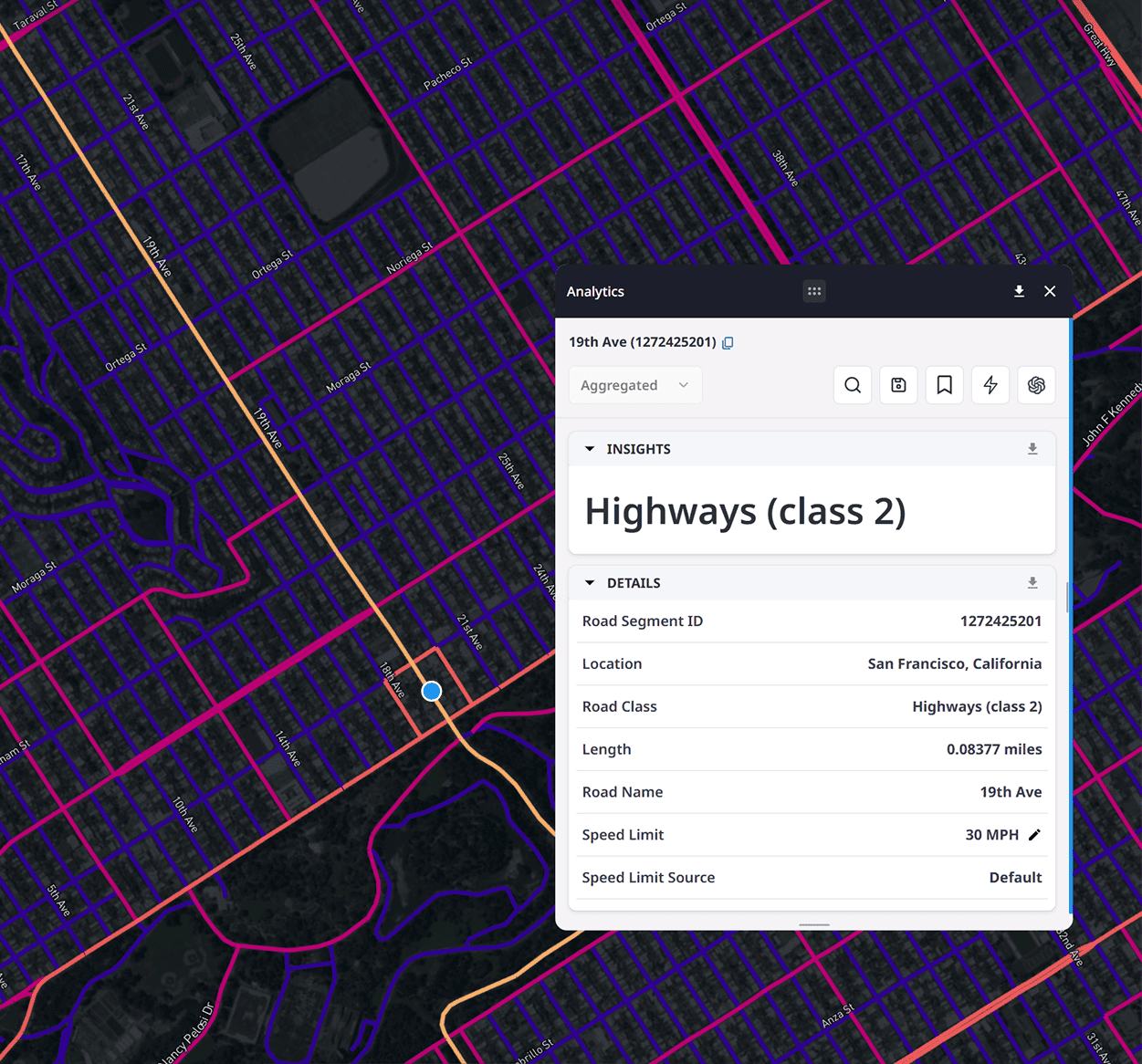 Import your local speed limit files at any time or leverage Urban SDK's continuous speed limit index.